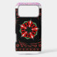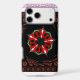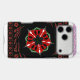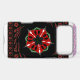 Red and Green: These vibrant colours are used in the central floral design, creating a striking contrast against the dark background.