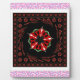 The composition is symmetrical and layered, focusing attention on the central floral motif, which is beautifully surrounded by a square border and an outer border adorned with heart shapes.