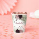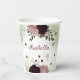 Romantic beautiful pink and plum burgundy flowers with green leaves botanical party paper cup.