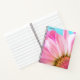 Spiral notebook with a vibrant pink and white flower. Close up photograph of this enchanting flower really grabs your attention.
