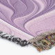 A quality printed throw has its advantages. This is a much finer weave throw than its loopier cousins, and though lighter, it is worth the investment for custom room accessorizing. The back is much prettier than the typical brown, and the fringe on the long sides very vivid, the selvage nicely done. Before photographing, I washed the throw in cold water, delicate, with a thicker woven throw the same size. On tumble dry low, this throw was dry in half the time as the other. This is a very practical quality if you use throws for furniture covers or to wrap up in frequently. The sleekness of the fabric makes it a great layer for accenting or protecting without the feeling of sitting on too much stuff. Perfect for napping or when you feel a light chill coming on. The color printing is beautiful and on this fabric, matched the design and color of my Photoshop image. This is an advantage for blending room fabrics and colors. The fringe on the short sides prints the colors from the design image and therefore varies from the side fringe. I streaked a white fractal line through the plaid pattern to give the illusion of weaving. This printed as crisp as an illusory thread, and put some white in the short side fringe, showing another advantage of print vs loomed- for artistic purposes, line lines, detail, and color integrity can be planned and preserved. My loomed throws have color limitations and more of a needlepoint texture. Print throws reproduce an exact image. The throw felt a little stiff straight out of the package, but this went away in the first delicate wash. Of course I searched the wash water for ink or bleeding and there was none.