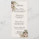 Pretty pink Spring flowers with draping vines, ferns and leaves elegant wedding menu. There are matching invitations, RSVP, and table cards.