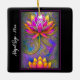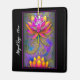 This vibrant holiday Christmas tree ornament features two beautiful ornate pink and orange lotus flowers on a black background. It can be personalised with a name and year or any text that you wish to add. -by MI Flower Shop