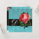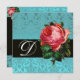 BEAUTIFUL PINK ROSE BLUE BLACK DAMASK MONOGRAM INVITATION