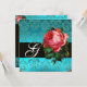 BEAUTIFUL PINK ROSE BLUE BLACK DAMASK MONOGRAM INVITATION