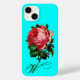 BEAUTIFUL PINK ROSE MONOGRAM,Teal Aqua Blue Case-Mate iPhone Case
