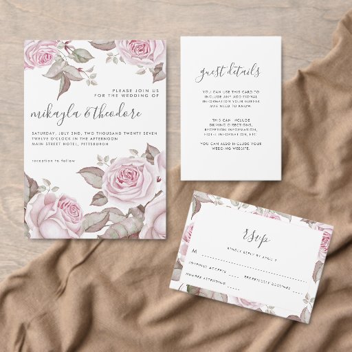 Beautiful Pastel Pink Watercolor Roses Floral Blooms with Pretty Script Advice for the Bride Card.