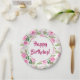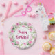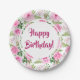 Beautiful Pink Roses Happy Birthday Paper Plate