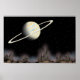 Universe of silence and infinite possibilities. This original artwork depicts the fantastical rings of Saturn and the surface of an unknown planet.