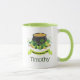 This coffee mug features a pot of gold, with a banner exclaiming "Happy Saint-Paddy's Day" with your name written in green font underneath. The inside and handle is in lime green. Choose from a variety of coffee mugs. Personalise yours today!