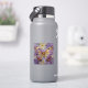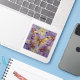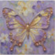 Sticker with an illustration of a beautiful gold and purple butterfly surrounded by white and purple flowers. It's done with an impasto style and just emanates beauty and grace.