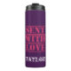 A lovely design, this thermal tumbler features a purple background with "Sent with Love" written in pink typography. Directly below is a template for personalising your name in light purple. Customise yours today!