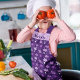 Pretty royal purple and lavender flowers decorate this cute violet floral kids apron with beautiful white hearts and cool shapes. Lovely personalised gift for a girl who loves to cook.
