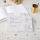 Beautiful and airy purple floral quinceanera guestbook features a pretty pastel purple background and delicate watercolor flowers with personalised name and mis quince calligraphy script.