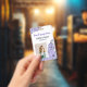 Vertical floral employee ID badge with beautiful purple flowers and sprigs, your employee's name and title, and your business name in purple.