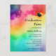 Graduation invitation with a watercolor background featuring colours of the rainbow.