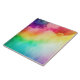 Ceramic tile with a watercolor background featuring colours of the rainbow.