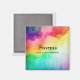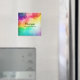A magnet with a watercolor background featuring colours of the rainbow. Text says: Storms don't last forever.