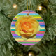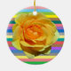 Beautiful yellow rose on rainbow stripes background ornament