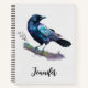 Spiral notebook with a lovely watercolor drawing of a crow. Dark blue and vibrant purple colours accentuate the beauty of this bird.