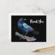 Thank You postcard with a lovely watercolor drawing of a crow. Dark blue and vibrant purple colours accentuate the beauty of this bird.