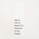 This minimalist quote design features the inspiring message “Beautiful Reasons to Be Happy” in a clean and modern layout. Created to promote positivity, mindfulness, and emotional balance, the simple typography and uncluttered style make it perfect for yoga, meditation, and wellness routines. Ideal for anyone who loves motivational quotes, calm aesthetics, and meaningful design. A thoughtful gift for yoga lovers, mindfulness seekers, or anyone embracing a positive lifestyle.