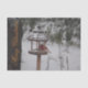 Modern Christmas tissue paper with a little red cardinal, and a bird house. The Merry Christmas text in gold can be personalised, or text is removable. An outdoor landscape in the snow.