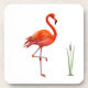 Beautiful Red Flamingo Bird & Reed Plant on White Coaster