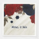 Beautiful red & navy flowers with some gold bronze leaves on marble background botanical wedding paper napkin