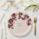 Pretty paper plates for your Victorian Rose Garden wedding. Beautiful red roses, pink peonies and white Lilies on a blush pink background.