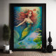 Beautiful Redhead Mermaid Swimming Reef Poster