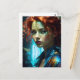 AI generated art of a beautiful redheaded woman wearing a sparkly blue shirt and some green ivy temporary tattoos on her face