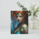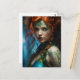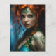 AI generated art of a beautiful redheaded woman wearing a sparkly blue shirt and some green ivy temporary tattoos on her face