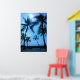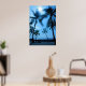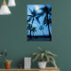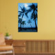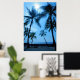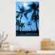 A breathtaking image of beautiful Hawaiian palm trees swaying in front of the blue tropical skies and ocean.