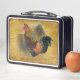 Beautiful Rooster and Rustic Barn Chicken Coop Metal Lunch Box