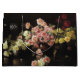 This design features a painting by the American Impressionist artist Joseph DeCamp (1858–1923). It is a still life showing roses in various colours. The roses are arranged in vases. From the left to the right, the roses are white, pink, yellow and red. The colours are beautifully bright and vibrant. Roses are a traditional symbol of romantic love and beauty. The original artwork was painted by Joseph DeCamp sometime between 1890 and 1899.