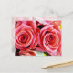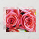 This postcard features a photograph of two colourful pink roses surrounded by other flowers. The back of postcard features same photograph but lighter to display your message.