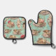 Beautiful rustic blue wood kitchen illustrations oven mitt & pot holder set