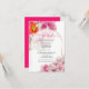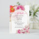 Details wedding enclosure card - Modern text fits nicely inside this beautiful sheer white gold edged arch frame that shows the underlying fantasy bright fuschia scarlet peony flowers edged in gold - original artwork © by WhimsicalArtwork™.