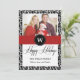 A dramatic design with a black and white abstract background, a bold red ribbon and a monogram circle in the centre. The words "Happy Holidays" is preprinted in the front.