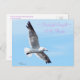 A Postcard with a beautiful, white Seagull flying against a blue sky. This photograph is Copyrighted, 2015, by me the photographer.