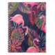 Beautiful seamless tropical pattern with pink flamingo and palm leaves on dark background. Abstract summer texture