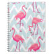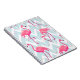 Beautiful seamless tropical pattern with pink flamingos on light grey geometric background.
