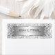 Elegant beautiful glamourous silver grey background with shinny metallic look with white damask and floral lace on each end. Customisable return address label. Suggested black colour font for nice contrast.