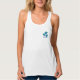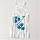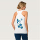 Denim blue floral patterned ladies sleeveless racer back tank top designer t-shirt, flowy sportswear. Beautiful text can be personalised with your inspiring message, or text is also removable. Flowers in blues on back of top are also removable, custom colour, size and text options to create your beautiful fitted summer top.