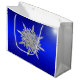Photo of a beautiful white snowflake, on a blue sky, with the sun shining in the corner, is featured on this gift bag. This lovely design is on both the front and back, making this gift bag perfect for those larger gifts for family and friends!