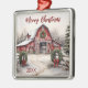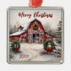 Beautiful Snowy Winter Rustic Red Barn Christmas Metal Ornament | Personalise with a year or any text that you wish to add.