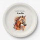 Paper plates with a beautiful illustration. A copper brown chestnut coloured horse head and upper body. With watercolor patches behind.