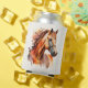 Can cooler with a beautiful illustration. A copper brown chestnut coloured horse head and upper body. With watercolor patches behind.