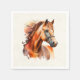 Paper napkins with a beautiful illustration. A copper brown chestnut coloured horse head and upper body. With watercolor patches behind.